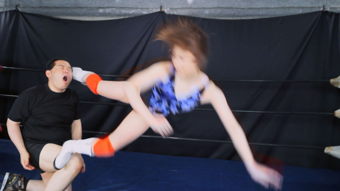 →センス抜群の美少女レスラー生駒はるなが競泳水着でミックスプロレスで大興奮!